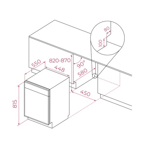 | Розміри для вбудовування | 820-870х448х550 мм |