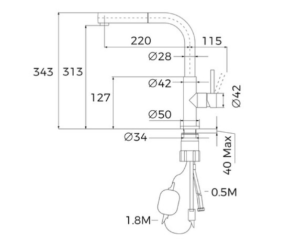 Довжина виливу | 220 мм |