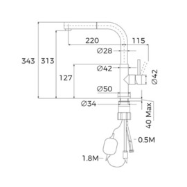Поворотний вилив з висувним шлангом (1 функція: звичайний струмінь води)