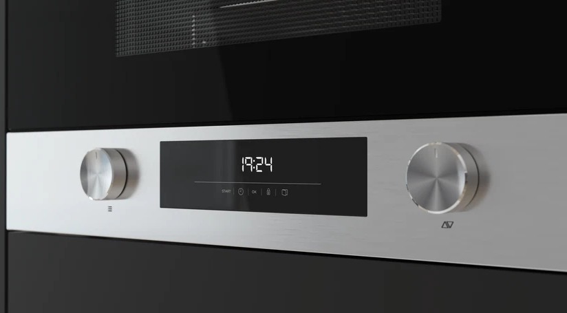 Нова плоска панель з нержавіючої сталі з захистом від відбитків пальців стійка до плям та плям, що забезпечує легке обслуговування. Завдяки своєму елегантному, сучасному оздобленню вона підвищує чистоту та естетичну привабливість духовки.