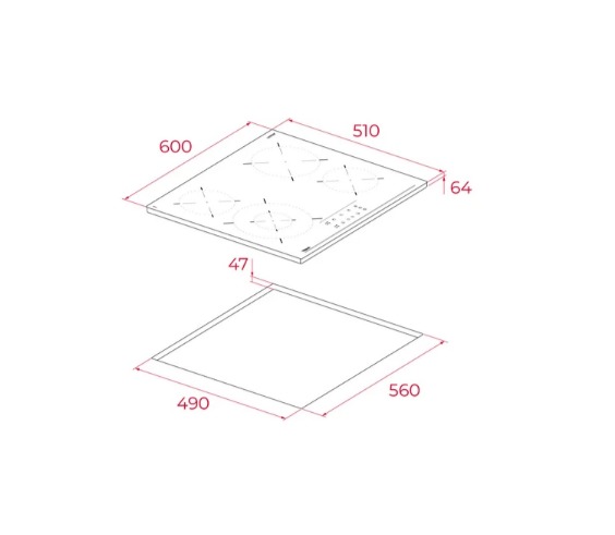 Ліва передня зона приготування- Споживання (Вт): 2100/ 800